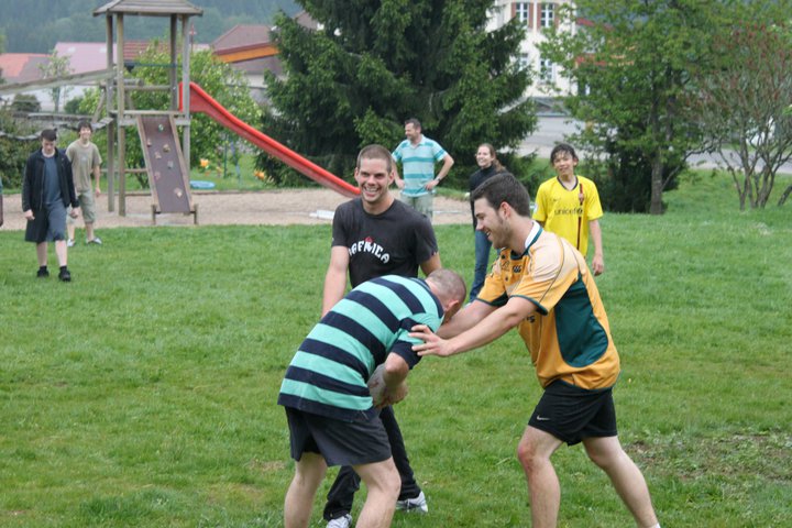 Just as Mark was beginning to show signs of life again we had the annual Church Retreat. It was held in the French Jura (about 1 1/2 hours drive away from here). We had a visiting speaker from Northern Ireland who spoke about key figures from the Old Testament; Joseph, Moses, Ruth and David. There was a lot said that challenged, encouraged, comforted and taught. I was also playing a part in a drama for the kids ministry (the less said about that the better!) which led to some public humiliation in the Sunday family service...Pride is never a good thing anyway right?! We had a great night on the Saturday as one of the guys from church organised a 'family fun' evening. He split the teams up into what season you were born in; Mark and I were rival captains (he was Jan,Feb,March captain and I was April, May, June!) but fortunately Oct,Nov,Dec won so we're still good friends! After that we played more crazy games with the youth until late into the night...those guys have endless energy! I hope the pics will tell of the fun, fellowship and good food that was shared at the weekend. (One of the things I found a genuine relief was to be cooked for and cleaned up after! Its the simple things you learn to appreciate!)